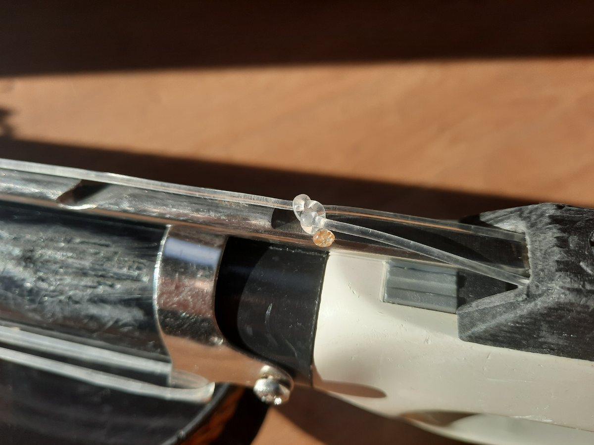 Et tu as raison, c'est exactement ça et on se demande ce que viennent faire les deux vis puisqu'il n'y a pas de taraudage latéral. Elle rentre donc en force sur la tête et les deux trous se trouvent juste devant les sandows et comme tu le dis, il faudrait juste une vis plus longue et un écrou mais l'écrou ne rentrerait pas à mon avis. Affaire à suivre, je ne sais pas si je le laisse en tête ouverte ou si j'essaie de fixer cette pièce.