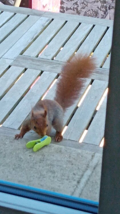 trop beau! ici se sont des ecureuils roux, protégés. merci des photos!
