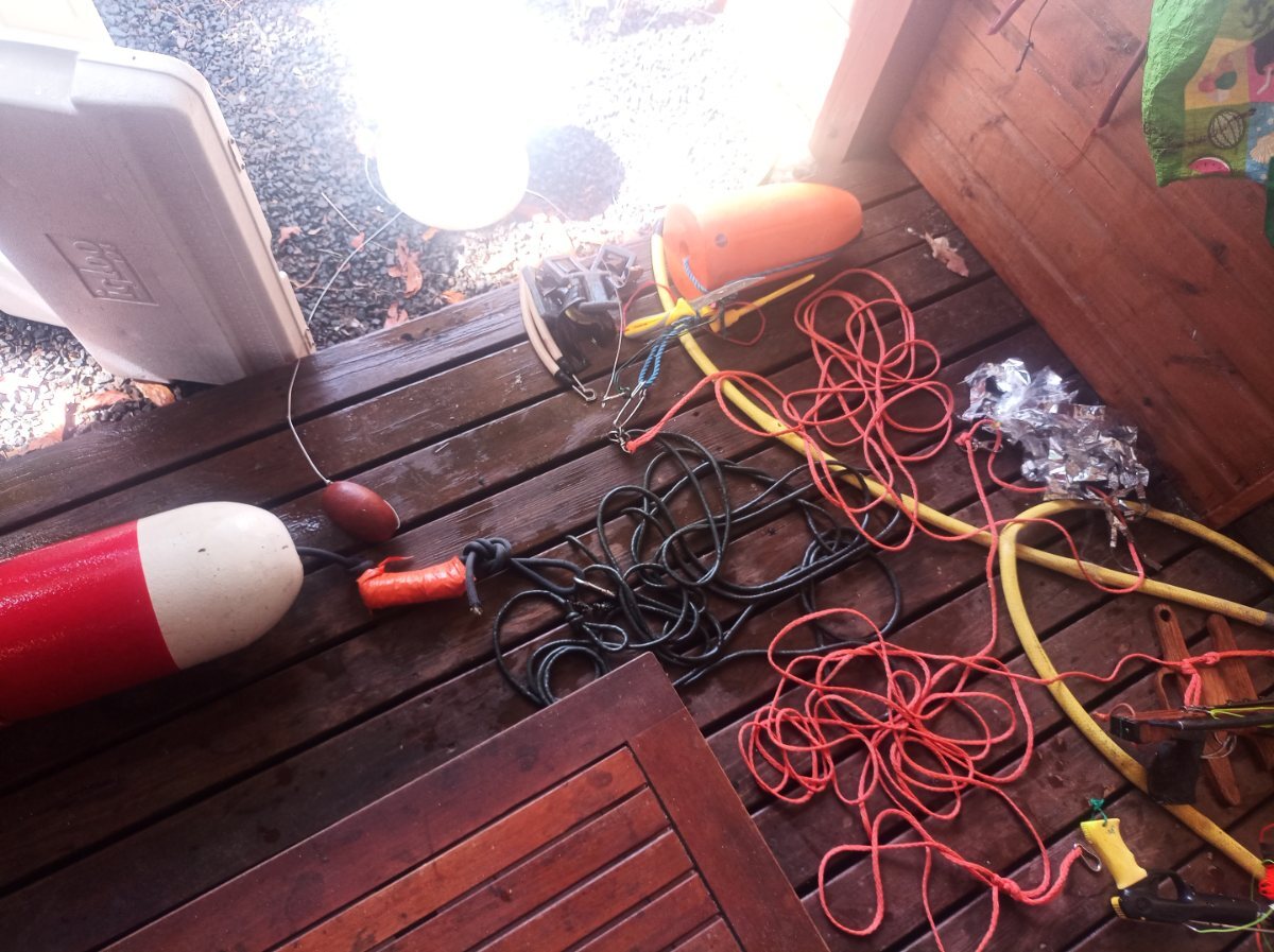 Juste une petite photo du montage que j utilise pour aller sur DCP au large en solo avec des pêcheurs pros ...J explique ,qui dit pêcheur pro ,dit pêche de rentabilité,ils ne sont pas là pour vous ! Donc s ils doivent suivre un marlin ou un train de bouée ,suivant l' état de la mer on ne voit plus le bateau ....donc un train de bouée est obligatoire pour la sécurité pas pour le poisson !😂 Donc 2 bouée de 15 litres bien visible avec un fumigène étanche accroché (scotch orange) en cas de problème ou panne du bateau etc ....bungee 10 m puis bouée de 7 /8 litres ou j' ai un accroche poisson avec couteau ,pour mettre les petits poissons ,runners,dorades,vieilles bois .....et aussi les poissons pour appâter comme un gros barra que je prends sur la bouée et que je découpe en petit morceau pour faire monter les thons ....puis une flotte line de 25 m environ au milieu j attache mon baron ,en bout mon gros fusil en break away et 4/5 m avant un mono sandow tête fermée car faut pas que la flèche se sorte et cassé le meca pour tirer les petits poissons car si on attend que les gros la journée peut être longue !😂 Avec ce système,je vois pas le temps passer et je me fais plaisir sur tout un tas de poisson intirable évidemment avec un gros fusil .😉 Donc voilà si vous avez la possibilité d y aller ,n hésitez pas mais faites attention ,s il y a du courant ,certaine fois je reste plus de trente minutes accroché au DCP !😂sans rien faire juste en attendant le bateau 2.....ou si la mer est forte . Toujours voir où le DCP ou le bateau ! Bonne pêche ,je fais cela depuis plus de 15 ans et je suis toujours là 😉mais faut faire attention quand même 🤣 -
