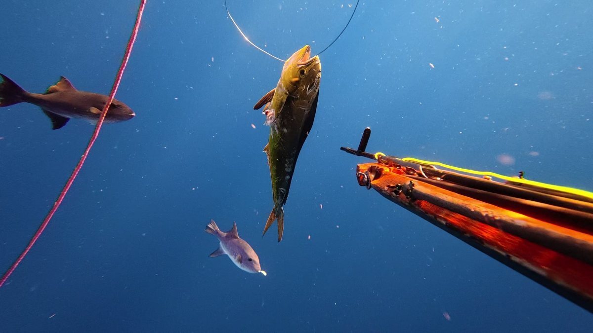 Oui le runner en carpaccio avec de la bonite ....Non là je suis au large si la mer se leve ou une panne je dois être retrouvé ,j' ai deux fusils et de quoi faire du frais ! Je vais faire un post sur la fàçon dont je procède ! Ah non ,c est un mono sandow 115 ultra léger qui flotte ,donc tout en imersion poignée et moulinet ....Mais j ai reparé il suffit de changer la rondelle frein qui s acheté à part et qui coûte rien 😉mais j avais fait aucun entretien depuis longtemps !😂 Donc à la mise a l eau j' ai cassé un sandow sur deux du gros fusil et le mono a resisté un peu heureusement 😉 mais hier pluie toute la journée donc j' ai fait plus de 20 ligatures et changer presque tous les sandows de mes fusils en gwada !😇 - Aujourd’hui