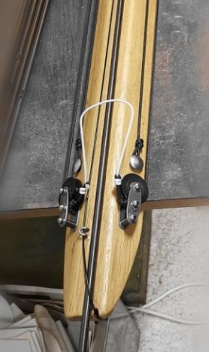 17. L'argument en faveur des poulies à 45 ° sur les Bazil est le suivant : Sur un roller simple traditionnel (axe horizontal et poulies verticales), il y a nécessairement un court moment à la toute fin de la phase de propulsion où le sandow travaille "verticalement" (quand la ligature est passée à la verticale de l'axe des poulies). Par réaction, la tête remonte très légèrement. Ça peut éventuellement remonter le talon de la flèche (si elle n'est pas déjà sortie), ce qui pourrait occasionner des tirs bas. Certains ont trouvé comme solution des stopper longs qui ralentissent le sandow bien avant que les ligatures ne passent au dessus des poulies. Associé à un double obus (le plus court monte sur le stopper, le plus long propulse la flèche), ça évite aussi que l'obus simple ne fasse monter verticalement l'arrière de la flèche en même temps qu'il monte sur les stoppers. L'idée d'incliner les poulies à 45° sur les Bazil, c'est d'annuler (ou limiter) cette réaction verticale du support pour éviter la montée de tête et les tirs bas (s'ils existent). Conséquence : il faut mettre les sandows sur les flancs du fût.