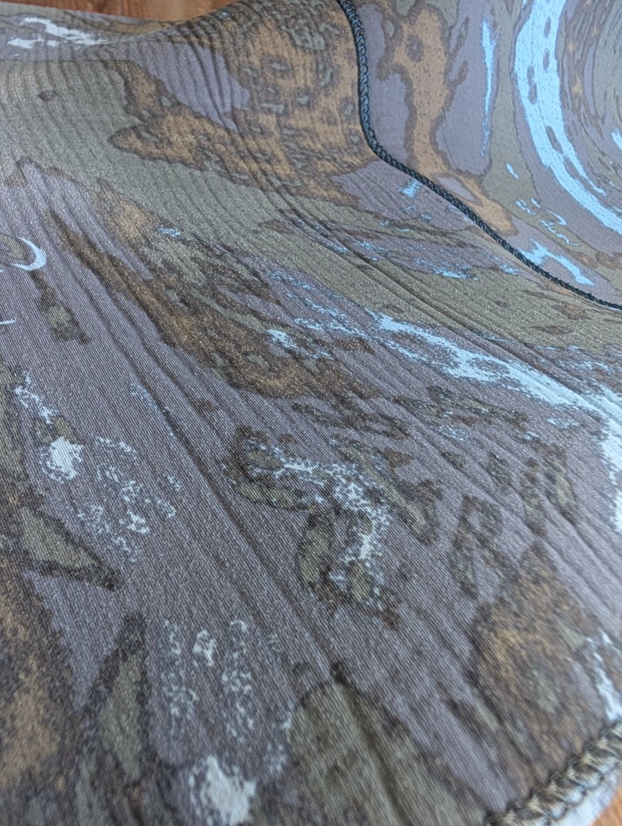 Compte rendu SHEICO L (version densité médium du Sheico) Comme il n'y a aucune information fiable sur plusieurs types de néoprènes (et que souvent on tente même de nous cacher l'origine du néoprène de notre combinaison) je vais faire un review d'un neoprène que j'ai utilisé pendant 5 ans. Ca servira peut-être à quelqu'un qui ne veut pas se fier aux âneries des vendeurs. Le nom du fabricant de la combinaison n'au aucun rapport avec la performance du neoprène mais je vais l'identifier : Rob Allen. J'ai chassé à des profondeurs moyennes entre 17 et 23 m. Certains jour, je plongeais plus profond mais c'était seulement occasionnel et rarement plus de 30m. Il n'y a pas vraiment de scénario pour les plongée peu profonde à Baja. De 2020 à 2026, j'ai chassé environ 18 mois complets à BAJA à raison de 3.5 sorties par semaine et pensons que chaque sortie comprenais deux heures d'immersion pour un total de 274.5 heures dans la flotte (seulement à Baja). Ajoutons environ 50 heures ailleurs dans le monde. 324 heure d'utilisation totale approximativement. La combie a été rincé religieusement après chaque sortie et maintenu à l'ombre pendant les séchages. La combie était rigide et peu élastique lors de l'achat. Il s'agissait bien de Sheico L, d'un neoprène de densité médium. Dès les premiers mois, la combinaison s'est ajusté à ma personne, ou moi à elle lol Pour les 3 premières années, le matériel a plus ou moins maintenu son épaisseur initiale de 5 mm. L'écrasement en profondeur était négligeable même à 30 m. Il n'y avait donc pas d'effet d'ascenseur dû au matériel. La quatrième année, j'ai vu un changement au niveau de l'écrasement. Je l'ai mesuré à 4 mm. Elle était encore chaude mais moins. En cette cinquième année, le néoprène est écrasé de façon plus importante. Certaines section sont à moins de 3mm d'autre à 4mm environ. Il n'y a toujours par de "gaufrage" comme sur une combie de yamamoto de deux semaines lol. C'est une section au dessus de la cuisse (qui n'est pas plié)... Les sections autour du bassin/fesses et derriere les genoux coudes, sont gaufrées. Ces plis n'étaient pas apparent pendent les premières années. Le Ici on voit que le matériel commence à en avoir marre jajajaja. - Aujourd’hui