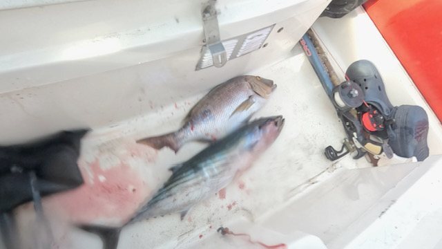 5. Bonjour à tous ! Petit CR du we dernier Le vendredi aprèm, je me bouge de sortir du taff pour régler les derniers détails sur le bateau, on termine à 20h avec les moustiques qui me pompent le sang à défaut d’autre chose… Samedi matin Dring driiiiing le réveil sonne et on se lève pour faire l’aube. J’y vais avec mon ami d’enfance Lolo alias @larshadow qui commence à progresser en chasse sous marine et qui va devoir faire sa présentation sur le fofo sous peine de tché tché! 🤣 On s’est connu en couche culotte, on est maintenant en combi ensemble 30 ans après. On décolle un poil trop tôt du port. Objectif Sérioles donc je souhaitais arriver le premier sur un spot très prisé. Comme prévu on est les premiers, on ne chasse pas ensemble au démarrage car je cherche LA seriole ou LE denti un peu plus profond que lolo qui reste dans peu d'eau pour l'instant. Quelques apnées après avoir démarré, je me cale derrière une roche que je connais comme ma poche maintenant. Je sais que derrière, je peux avoir de très belles surprises. Ils sont là, actifs malgré les oblades qui ne bougent pas. L’un de décroche du banc, je tire et je rate le premier Denti de la sortie. Je viens de changer la fleche pour une plus grosse sur l’alemanni (passage de 7.5 à 8mm)et mettre de nouveaux sandows. Va falloir revoir la visée. La fleche est plus lente, et d'ailleurs, ça ne me plait pas trop.. Je garderai certainement cette 8mm pour les tropiques en rajoutant un booster sur le dessus ! Derrière cette roche il y a une faille qui a le coté gauche complètement à découvert. Elle descend vers les posidonies en pente douce. Du poisson fourrage de petite taille est présent en quantité et le banc est très réactif. J’ai donc la réponse, aujourd’hui la nourriture ce ne sont pas les castagnoles mais les petits anchois. Je descends et me laisse glisser dans la faille. Je me cale au milieu de la descente histoire que si ils viennent chasser au-dessus je puisse tirer. Mon masque est collé au fond et je n’ai qu’un petit aperçu du lot de Dentis sur les posidonies. L’un d’eux vient de mon coté découvert à gauche et va chasser les poissons au dessus de la faille à droite. J’aligne, il se met à s’éloigner, je tire et fait une brochette. Embroché de la queue jusqu’à l’œil, même pas besoin de préparation pour le barbeuc !!! Il accusera 1.7kg. Toujours pas de gros Denti pour mon compte mais ca va arriver ! On change de zone, on croise mon binôme de d’habitude qui a fléché un Denti de 3kg qu'il est en train de le déraguer avec son binôme du jour, nous on file puisqu’ils n’ont pas besoin d’aide. Deuxième arrêt sur un sec de Marseille. J’ai le moteur guide avec le bateau et le fanion planté sur le sec. A la mise à l’eau je veux assurer mon tir sur un sar du kilo et j’attends trop, il se fait la malle… Je donne les instructions pour aborder le spot à lolo : il le contourne par la gauche et moi par la droite. Il tire une belle lasagne qui assurera un bon carpaccio. J’agachonne et j’entends ce doux bruit … VRRRRRRRRRR Vous l’avez ???😏 Oui c’est le doux son d’un bateau qui va me passer dessus ! VVVRrrrrrr il passe à 15m de moi doucement, je m’apprête à remonter énervé, et … VRRRRRRRR un 2 ème qui me passe littéralement au-dessus plus fort. J’attends puis perce enfin la surface. Des enculés de bulleux qui en plus, m’engueulent alors que je suis à 50m de mon bateau… ils n’ont pas fait demi-tour, une très bonne idée de leur part ! On fini le spot, je croise un banc de 100-200 barras qui ne s’approchent pas et sont furtifs. Je vais à l’endroit où ils passent et je vois la mange très réactive. J’appelle lolo et lui dis de faire attention, ça sent le gros prédateur. J’agachonne et 3 Pelamides passent, j’en tire une en étant certain de l’avoir. Et comme d’habitude quand on est sur et qu’on ne vise pas, soit on rate, soit on tire mal… Je l’ai dans le ventre. J’enlève toute résistance au moulin, elle dévide 70-80m de fil. Lolo assure et suit pendant que je la course avec son fusil et le fil en main. Elle s’est finalement posé sur 25, je descends et la saisie. Elle fait 3kg. Ce n’était pas le gros poisson attendu mais ca fait très plaisir !! On rentre et fait un dernier arrêt sur un spot peu profond. Je dois essayer mon moulinet electrique et lolo va faire du trou. Au moment de partir, je comprends qu’il nous a pondu une Excalibur Subaquatique. Impossible de sortir la fleche, si quelqu’un souhaite une flèche neuve elle est sur la ciotat !!