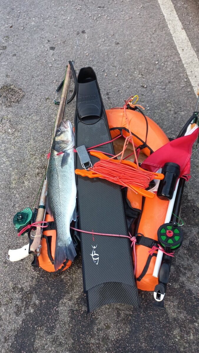 Mon copain croate est arrivé il y a quelques jours, pour la saison de pêche 2025/2026 Il ne chasse comme moi qu'au moulinet, mais son nouveau fusil est une merveille de réussite esthétique. 120 de fut, sandows sigal de 16mm, flèche de 8mm (le double ardillon ne m'a pas convaincu), 6 sandows en dessous et 4 au dessus,5 chargements pour finaliser l'armement. On voit que le moindre détail est soigné, particulièrement les gorges des sandows avec aucun frottement sur le fut. Poulies en céramique et chappe en titane, tout est super beau, fabrication par un local croate en bois et recouvert de carbone: zero défaut visuel, vis et mécanisme doré à l'or fin. En partant de la flèche qui pendouille, il met 3 mn pour être prêt à tirer. La portée serait de 7.5m pour traverser un gros poisson de plus de 20kg. Il me dit qu'il le place un poil au dessus de l'Allemani vela. Il a fait quelques poissons de 5 à 10kg pour l'instant en 3 sorties, dont une pêche de 40kg, à voir sur facedebouc