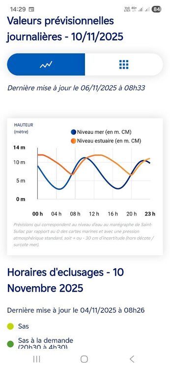 Bonjour tout le monde, J'envisageais d'aller faire des coquilles en rance lundi. Vue les courbes je déduis qu’il faut y aller avant 8h et après 20h. Si j’ai une bonne interprétation c’est mort pour moi. -