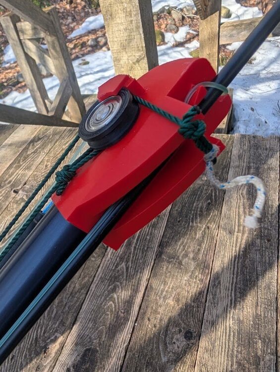 3. Il neige et j'ai une imprimante, un carrefour dangereux! Ca fait un moment que je bidouille des têtes d'invert à l'aide d'une imprimante. Les tests initiaux ont été effectués avec une vieille Cabalero. Ca fonctionnait jusqu'à ce que la tête explose. J'aurais pu imprimer un moule et faire une version solide de la tête en epoxy bourré de fibres de carbone. Cependant, je voyais bien que le choc de retour de la corde devait être régler de manière plus "sophistiquée". J'ai donc pensé à tasser le couvercle autour de la roulette pour que les nœuds s'y arrêtent sans soucis. Mais alors il faut constamment replacer le fil par dessus la roulette (peut-être que ca de bougerait jamais puisque sous tension, je n'ai pas essayé... encore). Photo de l'ancienne tête : Pour la nouvelle mouture, j'ai opté pour une piste d'atterrissage pour le wishbone. Ca permet de libérer la flèche et ca me parait joli. J'ai fabriqué une tête pour un ancien Omer Excalibur 2000 et une poignée de Sporasub Viper plantée dans un tube de carbonne qui trainait depuis 20 ans. Les têtes sont différentes en raisons des tubes (diamètres surtout) Vous pouvez constater ici que la tête entre dans le tube et le recouvre en même temps. Étant donné que c'est en PLE je voulais me donner une chance lol. ici on voit que la retenu de la roulette est bien bas pour éviter le "fracassement" ici on voit une erreur, j'aurais du faire un "sweep" pour tracer une tranchée pour le fil. Je vais corriger ca sur FreeCad... L'impression est bien basique, super rapide. Maintenant je dois aller dans l'eau avec! On voit ici que le mono n'entre pas bien dans la "tranchée" 839a1cd2-8018-4c0c-87a7-105ebf778cc6.jfif 839a1cd2-8018-4c0c-87a7-105ebf778cc6.jfif