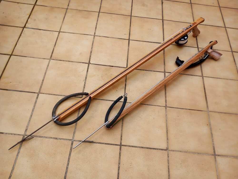 20. Oui, des doublons quasi tout neufs, qui n’ont vu l’eau que pour test rapide in-situ. Avec des petites différences d’essences, de taille, de stopper, de flèche… Au final, j’utilise essentiellement trois guns versions 1 : le roller vela 100 full teck, le roller vela 75 version acacia-séquoia et l’invert 135. Avec ces 3 là, je peux tout faire de mon programme habituel. Je voulais me faire un 130-135 basique triple sandows mais c’est devenu tellement compliqué de trouver du teck désormais que je suis en passe de laisser tomber pour un Orca ou un Deamon Teck… Les autres, c’est superflu, en collection, juste en secours si problème de nylon, de flèche ou de sandows…
