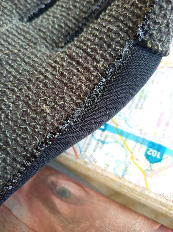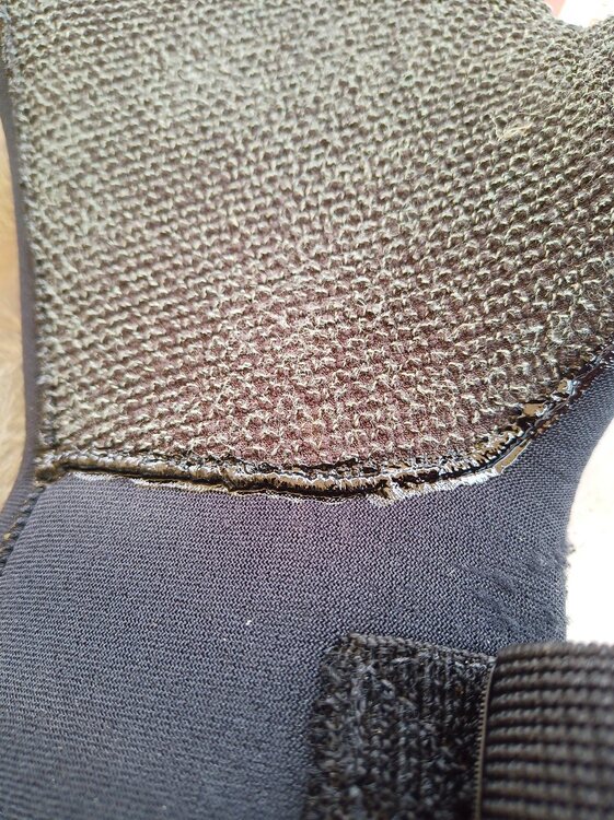 Bonjour les racleurs de fond, les adeptes de la spéléologie halieutique et de la varappe sous marine. Les droitiers auront remarqué que leurs gants gauches ne font pas long feu tandis que les droits orphelins remplissent leurs tiroirs.(Pour les gauchers c'est l'inverse...*). Souvent le point faible du gant c'est la couture, car même en achetant des paumes/dernières phalanges en "kevlar" c'est par la couture que le gant part en couille , et bien sûr c'est la main qui sert d'accroche sur le caillou qui trinque. Pour protéger la couture je l'enduis de "caoutchouc liquide".Avant j'utilisais le Polyglut® mais il faut l'appliquer au pinceau ou à la spatule, et son inconvénient (outre son prix) c'est que , plus on l'utilise donc plus le pot reste ouvert, plus il devient visqueux. Sur un site où on vend des chinoiseries je suis tombé sur le "caoutchouc liquide" dont l'application principale serait l'isolation de connexions électriques, en tubes avec petit applicateur fin. C'est idéal, plus ergonomique et beaucoup moins cher ( quelques centimes le ml )que le Polyglut Aquatys ou Epsealon. Ça sèche vite, reste souple, je n'ai vu aucune différence entre les deux produits. Et quand c'est sec: