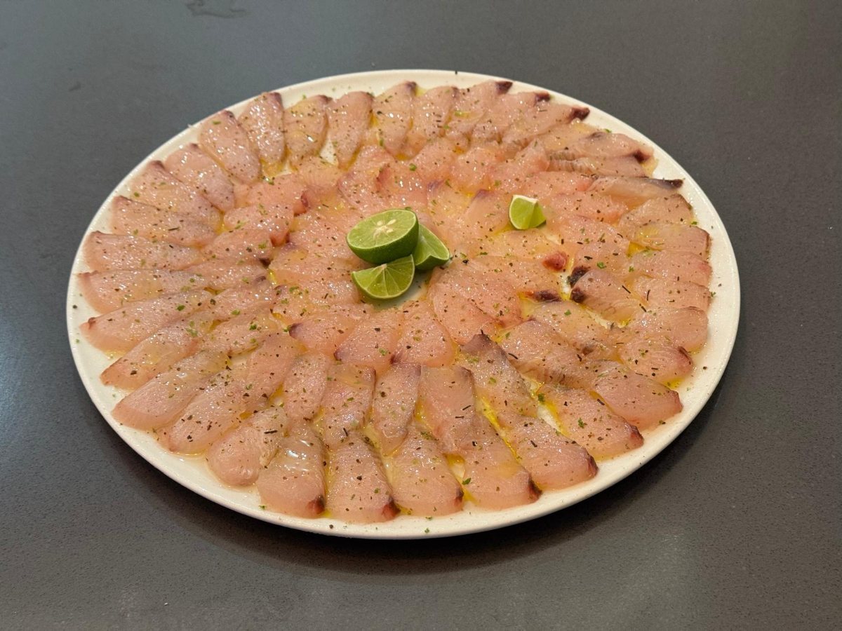 On s'est fait le thazard en sashimi après passage au congélateur avec huile d'olive, citron vert pays, poivre et sel, s'est délicieux! J'en avais jamais mangé, super poisson, j'en ai tiré un autre petit aujourd'hui 😛 Mes amis locaux m'ont déconseillé de tirer les gros bara, en effet ciguatera a priori