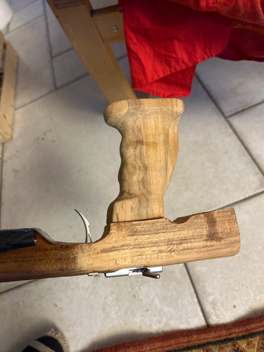 Je vous fais un petit point de l avancé du projet! J’ai mis 2 couches de fibres de carbone sur le dessous du fut et la rigidité a énormément augmenté! Comme vous pouvez le voir j’ai vernis lavant du fusil à l’epoxy avant de finir la crosse pour éviter d’abîmer la fibre si vous avez des remarques hésitez pas je peux encore faire des modifications!! Pierric - Aujourd’hui