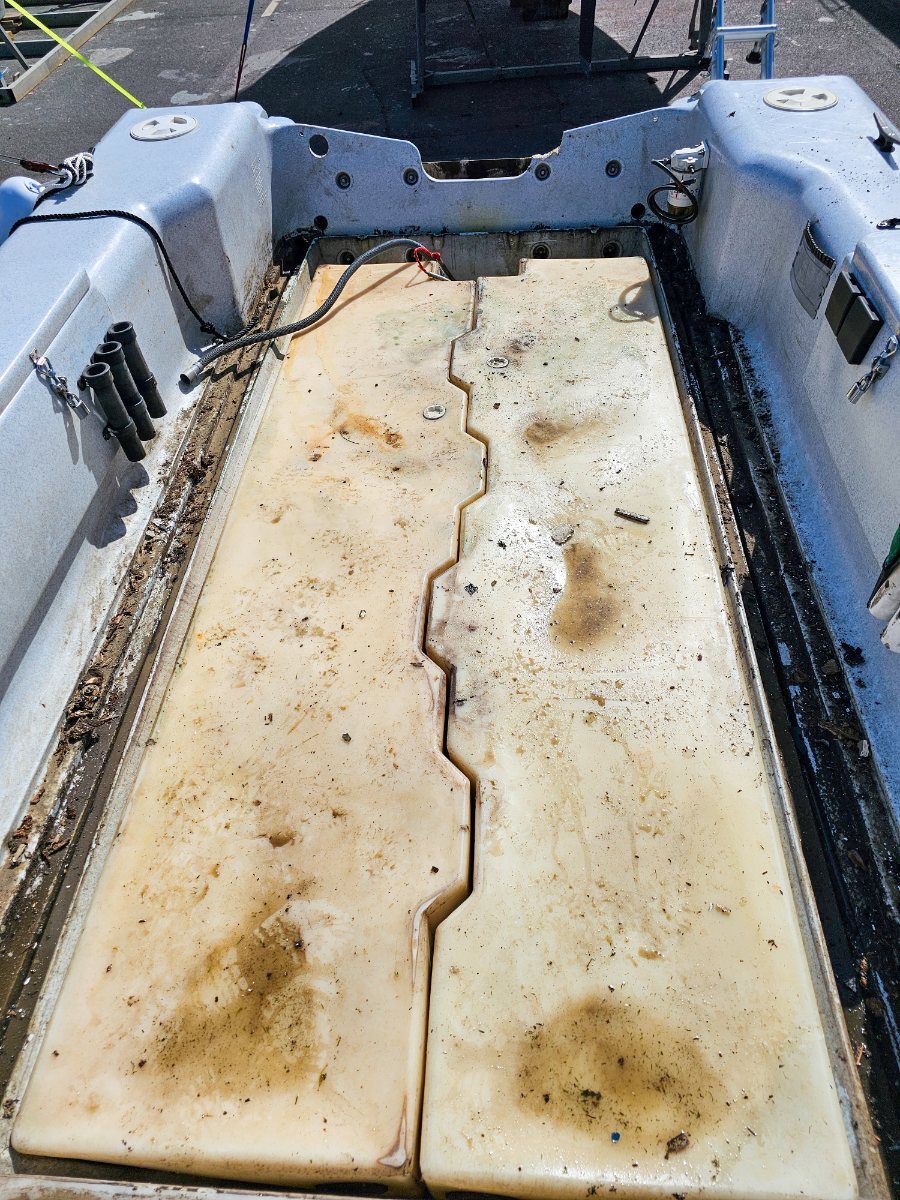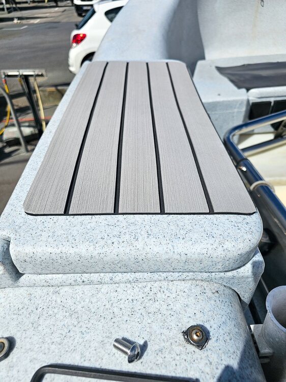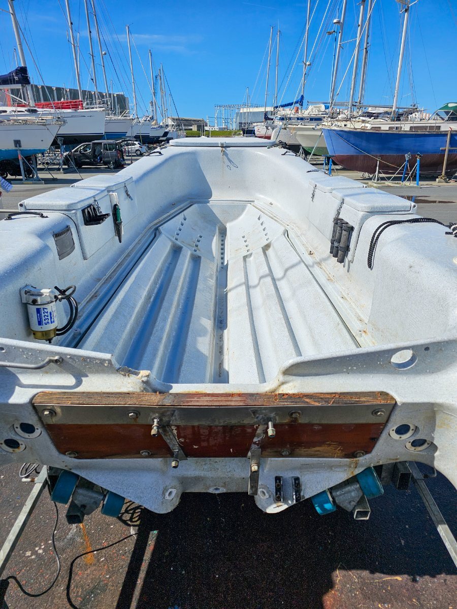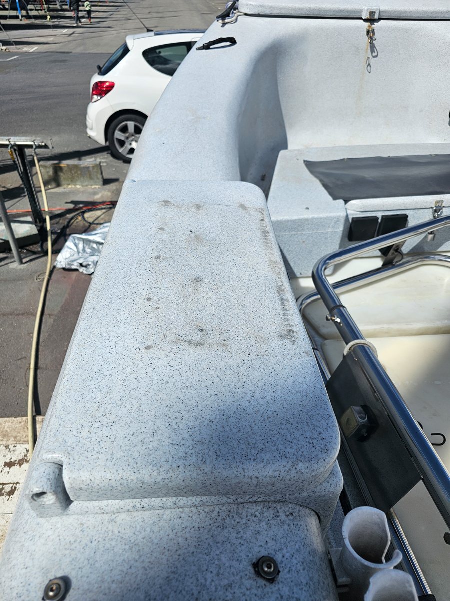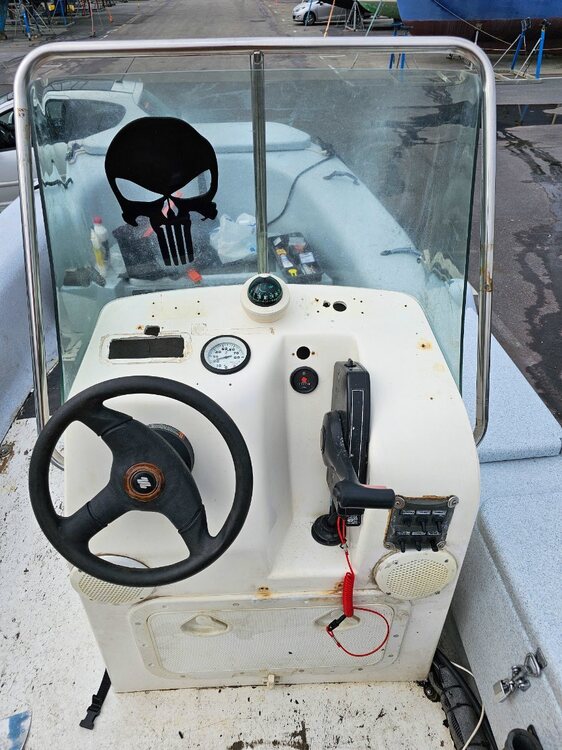 Histoire de partager un peu la réfection de ce bateau. J'ai décidé de le sortir de l'eau et de tout démonter. Je peux vous dire qu'il n'a plus aucun secret pour moi. Quelques vilaines surprises avec des trous partout, un pont complètement pourri sur les côtés et un état déplorable une fois le pont démonté. Cerise sur le gâteau, le Mariner 90cv 2 T est un arbre long alors que le bateau est prévu pour un extra long, 12cm d'écart quand même... Je vais monter un Mercury 100cv (direction hydraulique à la place de la mécanique du Mariner) et un pont en contreplaqué marine 18mm. Sinon, une bonne après-midi au Karcher, de la soudure plastique un peu partout...l'ancien proprio avait monté un siège fixé par 5 trous à travers le pont et il a percé un des caissons étanches par la même occasion. 😁 Le réservoir de 70L avait été rentré en force dans le coffre arrière, obligé de le découper pour le sortir. Bref, à l'heure actuelle il est entièrement nettoyé et stocké chez un professionnel pour montage du pont, de la console et du moteur. Pour la console, j'ai monté tout ce que je pouvais de façon à limiter la main d'œuvre.
