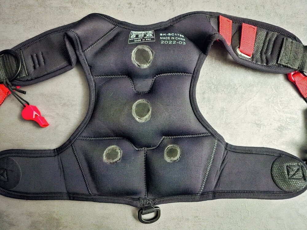 Je me suis sûrement mal exprimé. Je ne remets pas en cause la qualité du néoprène Epsealon, je remets en cause leur système pour insérer des poches de grenaille dans leur baudrier. Regardez la photo, les pastilles de néoprène que j'ai collé font 25mm de diamètre. Comment voulez-vous insérer des poches de grenaille là-dedans ?