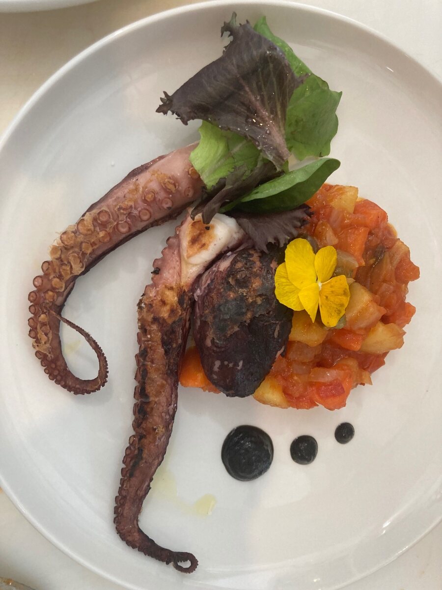 2. Depuis hier à la carte de mon petit resto. : pieuvre à la plancha, légumes en caponata, petite sauce de seiche à l’encre.