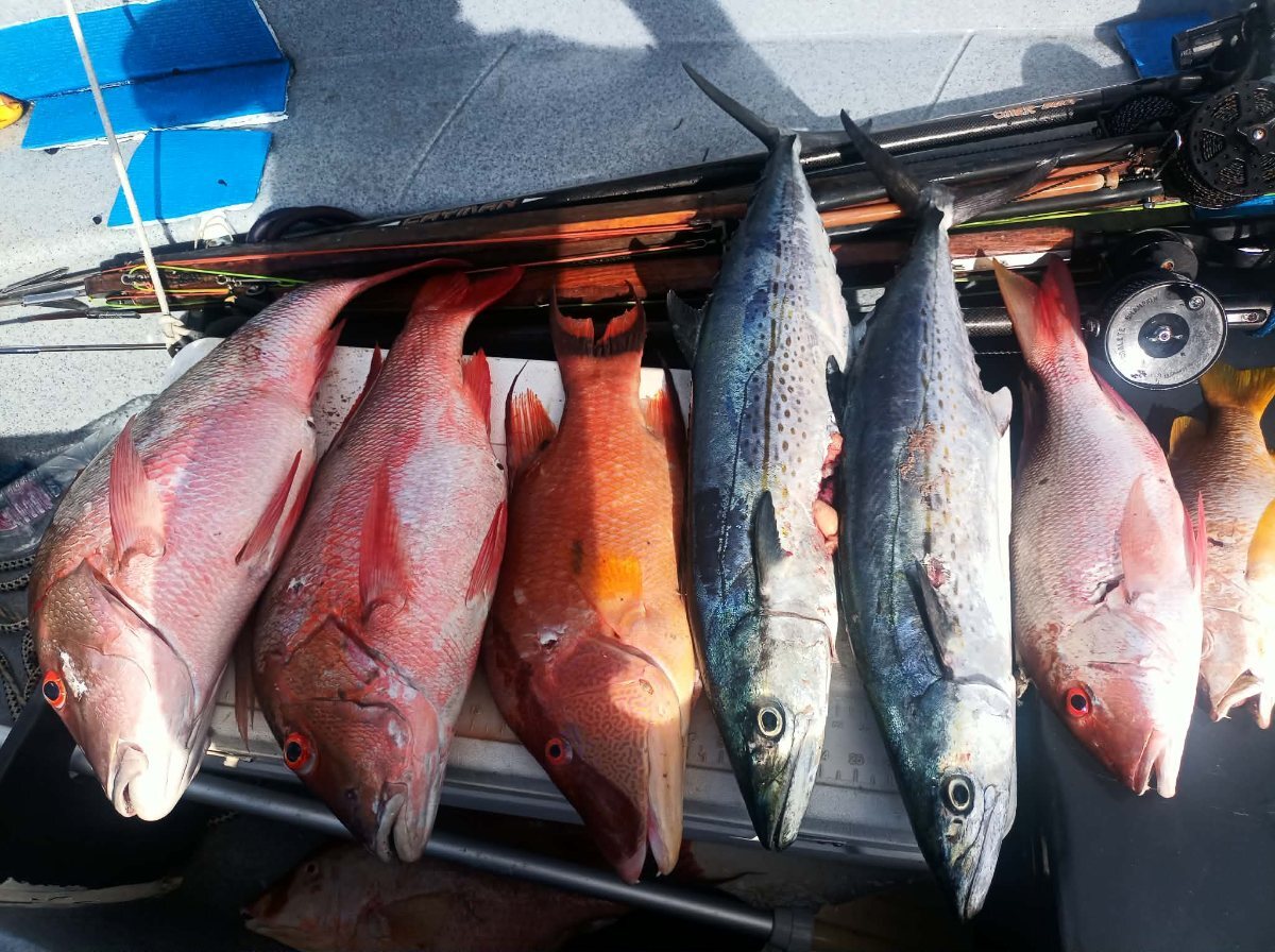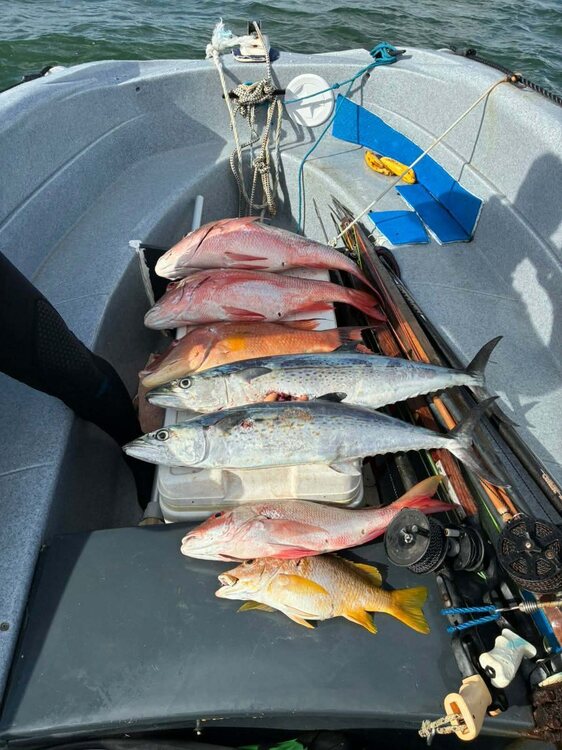 Premiere sortie avec de bonnes conditions ,on a pu aller un peu plus loin et bien nous en a pris .Toujours avec mon nouvel équipier ,on a pu faire une trés belle peche variée ! Sardes,Capitaines ,Thazards ...On a fait et c est amusant une peche presque totalement similaire en taille et espece mais a des moments de la journée différents comme quoi on peut faire du poisson a tout heure ici !😅 et a toutes les profondeurs ...On a peché sur un tombant entre 18 et 28 M .Moi plutot en bas ,avec le capitaine pris sur 28 m ,lui un peu plus haut avec la plus grosse sarde sur 18/20 qui est en plus venu directement comme quoi quand le poisson est la ,toutes les façons de faire son bonnes et ce qui fait tout le charme de la peche sous marine .Patrick commence a bien connaitre tous les poissons et a comprendre son comportement ,et son efficacité est maintenant totale ,je pense qu il va bien s amuser ici . -