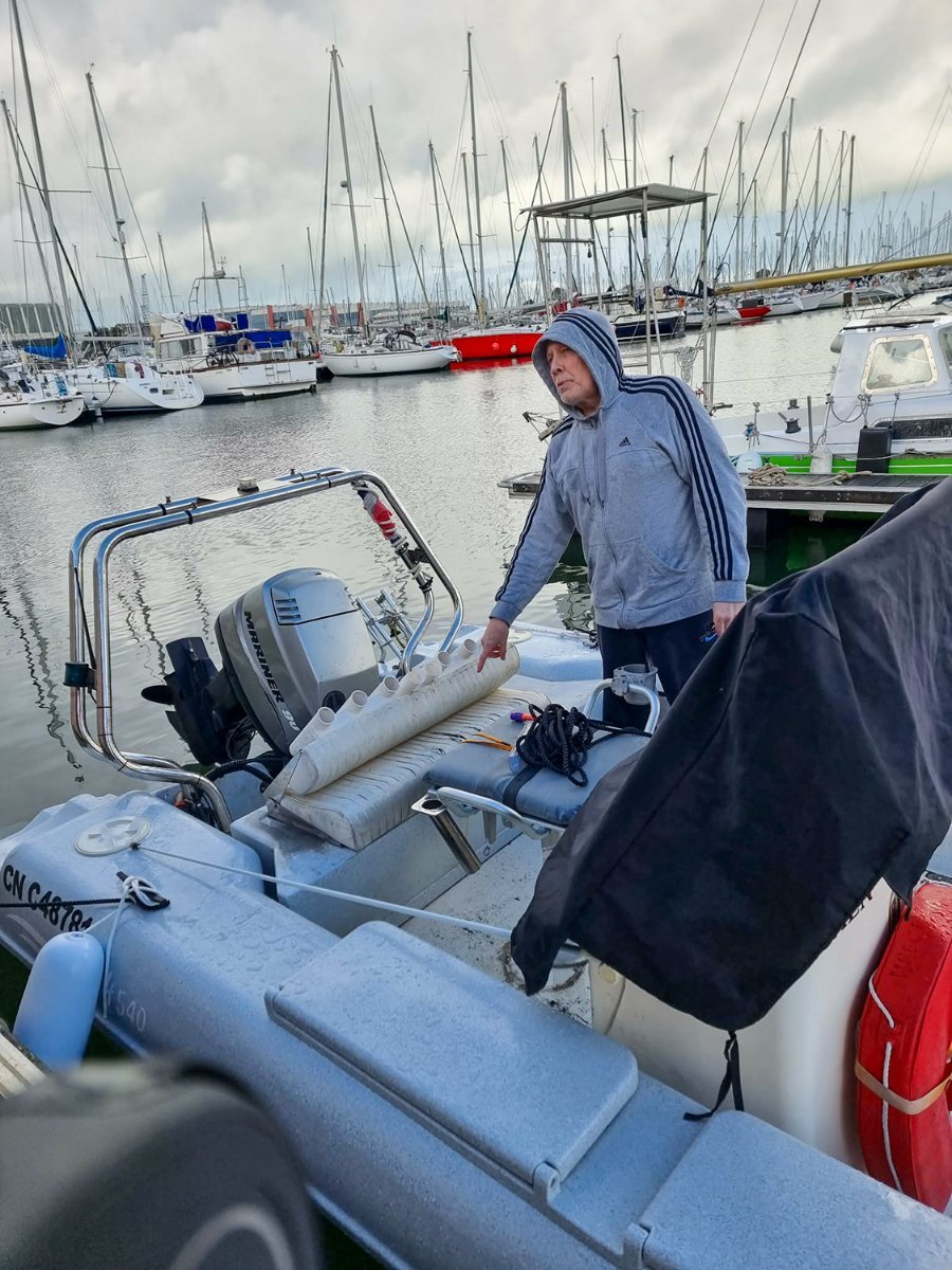 Bah franchement, je suis content comme tout. Le moteur tourne rond, le bateau a un comportement très sain et vraiment beaucoup de place à bord. Quelques trucs à revoir et des modifs à apporter mais ça va se faire au fil du temps. Le bateau est auto videur à l'arrêt et de fait, il pleut à seaux depuis 3 jours et pas une goutte d'eau dedans, c'est pas le cas de certaines embarcations à côté. Je vous en dirai plus quand j'aurais davantage navigué avec. Il pleuvait fort lors de la mise à l'eau, la capuche du survêtement n'a pas résisté longtemps. -