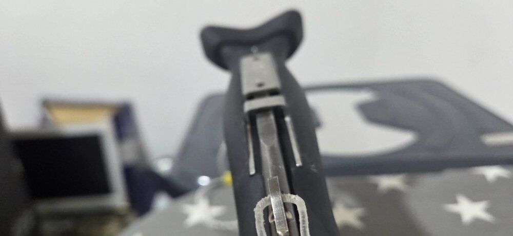 Oui. Le cintrage est sur tout le fut. Et biensure encore plus vers le milieu. Et entre la poignée et le guide fleche. La poigné est plus basse de 0.1mm. Qui est lepaisseur d'une tete d'aiguille. Ca se voit presque pas a loeiil. Mais jai polis un peut sur la partie male qui s'enfonce dans le tube. Un tout petit peut. Pour corriger entre autre jai remonté l'axe de 0.1mm. Et maintenant cest pile poile. Cad. Le guide fleche du tube et celui de la crosse. Sont sur le meme axe. Et bien droit. En En faisant cela . Jai remarqué que oui. La cassette devenais plus haute que la hauteur normale ( sans les 0.1mm que jai modifier) . Le truc flagrant que l'on voit. Cest que la piece en inox sous la fleche. Appuie sur la fleche seulement avec l'extremité. Entre autre la fleche une fois mise dans la cassette. Est completement a plat sur le tout. Mais le mecanisme du largue fil. Est genre 0.2mm plus bas Et c'est ce qui n'est pas du tout logique. Car normalement c'est linvers qui se passe. Car jai fais remonter l'axe de la poignée. Merci Jipee. Pour ces details. Mais c'est l'invers qui se passe chez moi. La.fleche a plat du le guide fleche. Rentre bien dans le mecanisme. Et il reste un petit 0.3mm entre le dessus de la fleche et le plafond de ma cassette. 😅😅 - Hier
