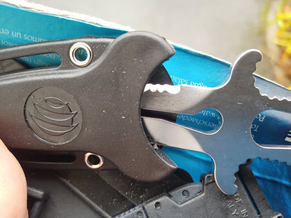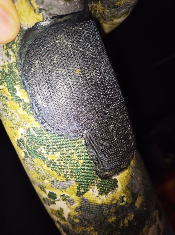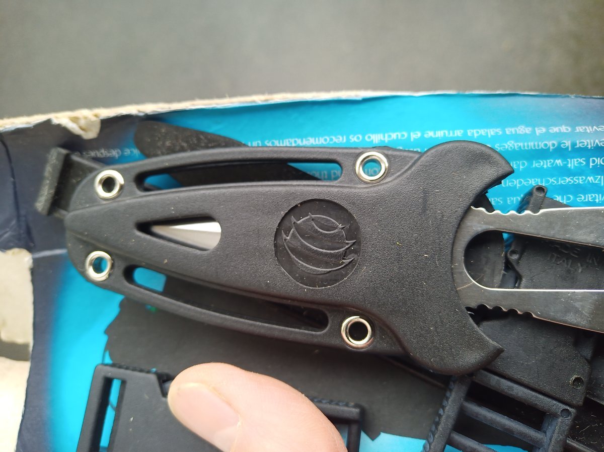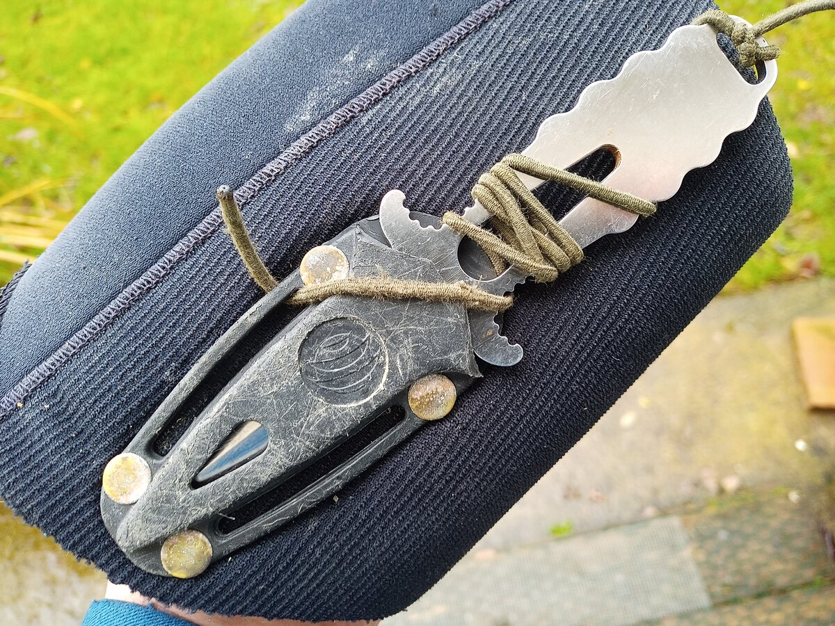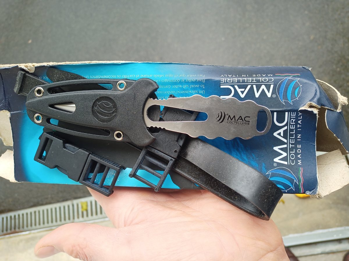 Petit sujet pour les habitués de la perte du couteau, un bricolage qui réduit beaucoup les risques de perte tout en préservant le rôle de cet instrument dans la sécurité du chasseur. Un pote m'avait déjà vanté son système : un petit sandow assez fin pour relier la dague à l'étui. Ça ne me convenait pas car je pensais qu'en cas d'urgence ça pourrait induire une perte de temps et ralentir une intervention "urgentissime" genre : couper un filet ou une corde où je serais prisonnier. Le déclic a été ce jour où j'ai laissé tomber le couteau au bord en vidant les poissons, impossible de le retrouver parmi les blocs et les algues, par marée montante bien sûr. J'ai donc eu l'idée de relier le couteau et l'étui par un petit sandow sans faire de nœud au niveau de l'étui, une simple fixation "en force" , le sandow pouvant coulisser et libérer le poignard en cas de panique et de précipitation. Quelques secondes de gagnées ça peut faire basculer la situation favorablement. Je vous montre comment j'ai fait mais bien évidemment chacun pourra adapter l'idée à son cas personnel et son matériel, le plus important étant le but à atteindre et non la façon d'y arriver. Le matos d'origine, très bonne lame mais le plastique de l'étui se déforme avec le temps au niveau du "verrouillage" et le couteau risque de tomber, surtout au bras avec la lame vers le haut : Ensuite, ma fixation"perso" sur un bout de manche (ou mollet je ne sais plus) , avec rivetage sur une contre-plaque de plastique. Un morceau de scratch permet de l'empêcher de glisser sur la combi. Le sandow empêche le couteau de sortir, sauf si on le veut évidemment. Ensuite petite démonstration, d'abord en mode "normal, cool" pour achever un poisson par exemple : VID_20251128_131224.mp4 Et en mode "urgence": VID_20251128_131333.mp4 Après, pour remettre le sandow en place on peut s'aider de la pointe du couteau, mais c'est anecdotique, après on a tout le temps...😁 -