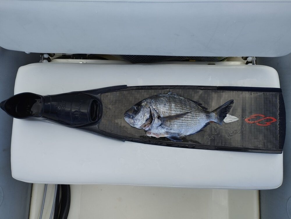 CR rapide de samedi Un peu de houle et de vent mais moins qu’annoncé, pas de courant et une visi très correcte entre 4 et 7m. 1er spot RAS 2ème spot RAS 3ème spot RAS 4ème spot des sars sont dans ma rague mais ils bougent et je ne vois pas bien avec la fumée qui en sort. Je lève la tête du trou et je croise un merle du kilo passé qui termine sur la flèche. 5ème spot RAS 6ème spot un peu de vie près de ma rague. Un peu plus loin je suis un sar qui rentre dans une autre zone de dalles connues. Je pique difficilement un sar au 4 dents mais ce n’est pas celui qui était visé il est petit. J’en prend un plus correct ensuite. 7ème spot je prospecte. Je fais un gros rouget dans un banc de 5 mais je ne les retrouve pas ensuite. Je découvre une belle dalle avec des sars dedans. J’en fais un mais pas plus car ça se trouble de trop après le tir. 8ème spot des gros sars sont sous la pierre. Le plus gros bouge, ça s’aligne avec d’autres, je tergiverse et finalement je lâche le tir. Une apnée plus tard j’ai un poisson de plus du kilo dans les mains. Je fais ensuite un autre joli sar dans la même pierre avec un tir ambitieux mais l’extraction s’est bien faite. 9ème spot je cherche les rougets. Ils sont là, un banc de 50 mais qui nage pas mal. J’en fait 3 le compte est bon on rentre le vent se lève. Vivement la prochaine.