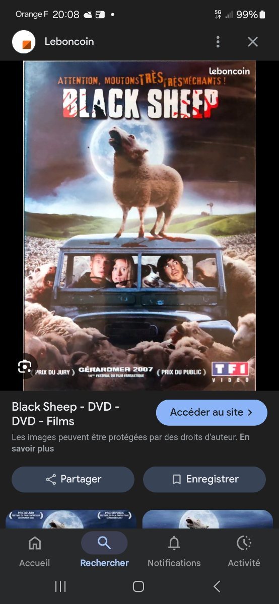 Ume Tarei Posté(e) lundi à 18:10 Posté(e) lundi à 18:10 Y'a un filmde série z de 2006 avec des moutons tueurs Citer